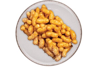 karamellikreem (glükoosisiirup, magustatud kondensPIIM, suhkur, vesi, kakaovõi, modifitseeritud tärklis, paksendaja E406, lõhna- ja maitseained, emulgaatorid: E471, E322; sool, happesuse regulaator E330, säilitusaine E202), maisipulgad (maisitangud 72%, suhkur 25%, sool), rõõsaKOOREVÕI