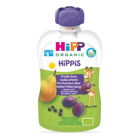 100% puuvilja-marjapüree* (pirnid* 75%, ploomid* 22%, mustsõstrad* 3%). *mahepõllumajandusest. ELi/ELi-väline põllumajandus. AT-BIO-301