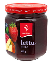 suhkur, vesi, õun, maasikad, vaarikad, mustikad, paksendaja (E440), happesuse regulaator (E330), säilitusaine (E202). 10 g toodet sisaldab 40 g marju ja puuvilja