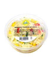 Valge peakapsas, konserveeritud paprika (punane paprika, vesi, piiritusäädikas, sool, stabilisaator kaltsiumkloriid, magusaine sahhariin), värske kurk, konserveeritud mais, sidrunhape, rapsiõli, suhkur, äädikas, sool