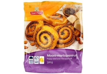 NISUJAHU, moonitäidis 27% (vesi, mooniseemned 29,6%, suhkur, modifitseeritud kartulitärklis, MUNAVALGEPULBER, kergitusained: difosfaadid (E450), naatriumkarbonaadid (E500), kaltsiumfosfaadid (E341); paksendaja: naatriumalginaat (E401), stabilisaator: kaltsiumsulfaat (E516), NISUTÄRKLIS), vesi, VÕI 14%, martsipanitäidis 5% (suhkur, vesi, martsipanimass 10% (MANDEL 52%, suhkur, vesi, suhkrusiirup, etanool), LÕSSIPULBER, želeeriv aine: pektiin (E440), happesuse regulaatorid: sidrunhape (E330), kaltsiumkarbonaat (E170); lõhna- ja maitseained, säilitusaine: kaaliumsorbaat (E202), sool), pärm, suhkur (sh. kartulitärklis), läige (vesi, hernevalk, dekstroos, maisitärklis), sool, NISUGLUTEEN, dekstroos, taimsed kiud, stabilisaatorid: guarkummi (E412), ksantaankummi (E415); päevalilleõli, emulgaator: rasvhapete mono- ja diglütseriidide mono- ja diatsetüülviinhappeestrid (E472e), jahu parendaja: askorbiinhape (E300), ensüümid (NISU). Põhilise koostisosa päritolu: EL.