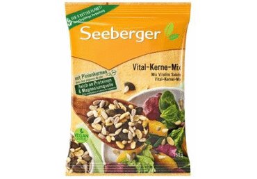 päevalilleseemned (45%), kooreta kõrvitsaseemned (28%), röstitud SOJASEEMNED (17%), PIINIAPÄHKLID (10%). Võib sisaldada jälgi teistest PÄHKLITEST ja MAAPÄHKLITEST.