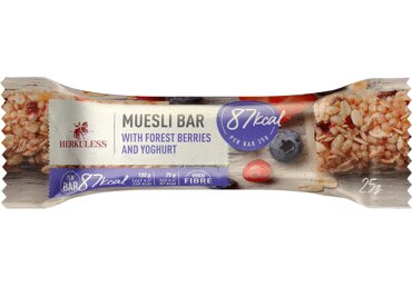 Oligofruktoosi siirup; KAERAHELBED; valge kate 18% (suhkur, palmituuma rasv, LÕSSIPULBER, VADAKUPULBER (PIIM), kookosõli, glükoosisiirup, LAKTOOS, emulgaator- SOJALETSITIIN, looduslik lõhna- ja maitseaine); teravilja krõpsud (NISUJAHU, VADAKUPULBER (PIIM), sool, kurkum, kergitaja- söögisooda); niiskusesäilitajad: (sorbitoolsiirup, glütserool), maltodekstriin, jõhvikalisand 4,5% (suhkur, kuivatatud jõhvikad 44%, riisijahu, päevalilleõli), maisihelbed (mais, sool, ODRALINNASTE EKSTRAKT); palmirasv, kuivatatud maasikatükid 0,7%, mustikalisand 0,7% (suhkur, glükoos-fruktoosisiirup, mustikad 15%, õunapüree konsentraadist, riisijahu, mustikamahl konsentraadist 6%, tarretav aine- pektiin; palmirasv, hape- sidrunhape, looduslik lõhna- ja maitseaine, sidrunikiudained), konsentreeritud õunamahl, aroomaine, JOGURTIPULBER (PIIM) 0,4%, hape- sidrunhape; sool, emulgaator- SOJALETSITIIN. Võib sisaldada MAAPÄHKLITE ja muude PÄHKLITE osakesi.