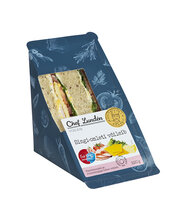 Sai (NISUJAHU, vesi, rapsiõli, linaseemned, RUKKITERAD, maisiterad, suhkur, KAERAHELBED, päevalilleseemned, sool, emulgaator E481, RUKKILINNAS, pärm, säilitusaine E282), kaste (majonees (MUNAKOLLASEPULBER, TÄISMUNAPULBER, LÕSSIPULBER, happesuse regulaatorid E260, E330, E500, SINEPIPULBER, säilitusaine E202, stabilisaatorid E412, E415, toiduvärv E160a), juust (PIIM, sool, laap, juuretis, toiduvärv E160b), SINEP), omlett 14% (KOGUMUNAMASS, kreem (PETT, palmiõli, kookosõli, täielikult hüdrogeenitud palmiõli, modifitseeritud tärklis, emulgaatorid E472b, E435, E433, lõhna- ja maitseaine, stabilisaator E407), modifitseeritud maisitärklis, tšilli), tomat, sink 9% (sealiha 98%, stabilisaatorid E450, E451, dekstroos, antioksüdant E316, säilitusaine E250), salat frillis.