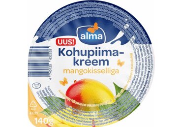 KOHUPIIMAKREEM 50% ( KOHUPIIM, suhkur, vanill, vaniliin, paksendaja (pektiin), happesuse regulaator (sidrunhape), toiduvärv (karoteenid)), mangokissell 50% (vesi, suhkur, mango 10%, modifitseeritud tärklis, happesuse regulaatorid ( naatriumtsitraat, sidrunhape) lõhna- ja maitseained).