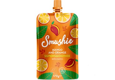 ökoloogiline mangopüree (45%), ökoloogiline virsikupüree, ökoloogiline apelsini viljaliha (19%), vesi, ökoloogilised datlid (5%).