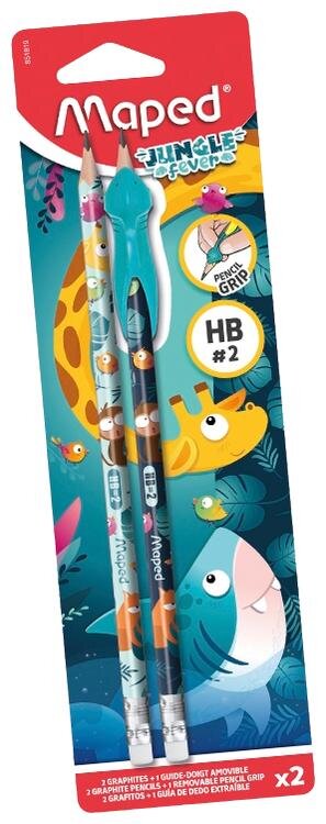 Harilik pliiats puiduvaba Jungle Fever kolmekandiline HB 2 tk kummiga, MAPED, 1kmpl