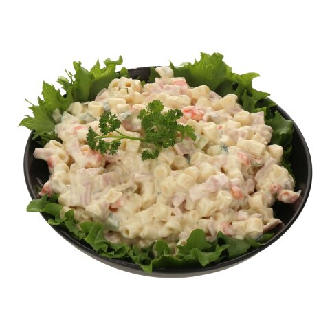 majonees (rapsiõli, vesi, suhkur, sool, LÕSSipulber, MUNAkollasepulber, SINEPipulber, modifitseeritud tärklis, paksendaja: E415; happesuse regulaator: E260, E330; säilitusaine: E202, E211; toiduvärv: E160a; SINEPI lõhna- ja maitseaine), keedetud makaron 30,1% (durumNISUjahu, vesi, rapsiõli), sink 14,6% (sealiha 65%, vesi, seakamar, tärklis (kartuli, herne), sool, modifitseeritud tärklis, hernevalk, paksendajad: E407, E415; seavalk, stabilisaator: E450; happesuse regulaator: E451; suhkur, maltodekstriin, antioksüdant: E301; lõhna- ja maitseained, vürtsid, säilitusaine: E250), kurk, marineeritud kurk (kurk, vesi, piirituse äädikas, sool, suhkur), porgand, sool, must pipar