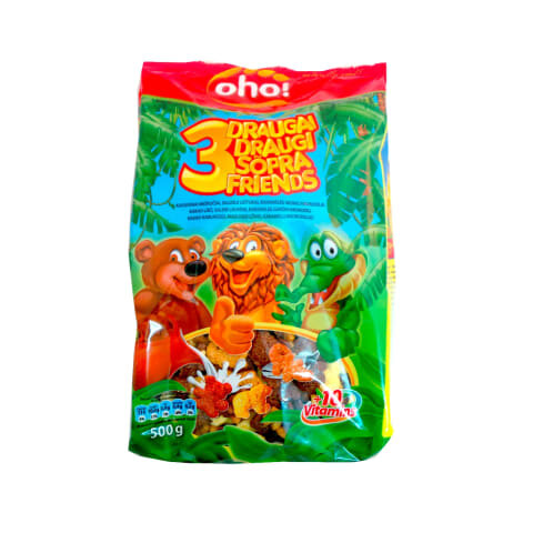 jahu ( NISU (sisaldab gluteeni), maisi, KAERA (sisaldab gluteeni)) 67%, suhkur, glükoosi- fruktoosisiirup, rapsiõli, kakaopulber 1,4%, LINNSEEKSTRAKT (sisaldab gluteeni), vähendatud rasvasisaldusega kakaopulber 0,6%, karamelliseeritud suhkur, sool, magustatud KONDENSPIIM (suhkur, PIIM), rasvavaba PIIMAPULBER, emulgaator (rapsi letsitiin), happesuse regulaator (sidrunhape), vitamiinid (*RI 50%)(DL- -tokoferüülatsetaat (6,0mg), L-askorbiinhape (40mg), tiamiinmononitraat (0,55mg), riboflaviin (0,7mg), nikotiinamiid (8,0mg), püridoksiinvesinikkloriid (0,7mg), pteroüülmonoglutaamhape (100 g), tsüanokobalamiin (1,25 g), D-biotiin (25 g), kaltsium-D-pantotenaat (3,0mg)), kaneel, lõhna- ja maitseained (šokolaad, mesi, vanilliin, KONDENSPIIM, VÕIKREEM, karamell)
