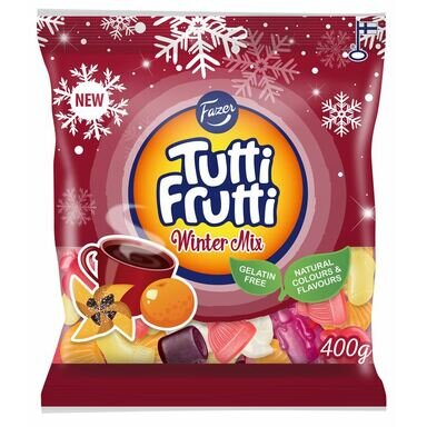 suhkur, glükoosisiirup, NISUtärklis, modifitseeritud kartulitärklis, happesuse regulaatorid (piimhape, naatriumlaktaadis), värvivad toiduained (kõrvitsa-, porgandi-, redise-, kirss- ja õunakontsentraat), looduslikud lõhna- ja maitseained, glaseeraine (karnaubavaha). * Toote koostisosade loetelu võib muutuda. Kontrollige enne toote tarbimist pakendil esitatud koostisosi.