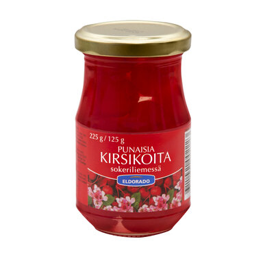 Kirsid (vähemalt 125g), suhkur, vesi, aroom, happesuse reguleerija: E330, värvaine (E127), antioksüdant (E220 vääveldioksiid)