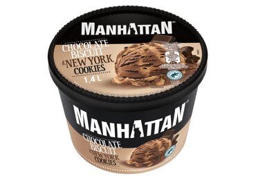 taastatud lõss, vesi, glükoosisiirup, suhkur, vadakupulber (piimast), kookosrasv, madala rasvasisaldusega kakaopulber1 (4%), purustatud New Yorgi kakaoküpsised [nisujahu, suhkur, rapsiõli, madala rasvasisaldusega kakaopulber1 (0,1%), sool, kergitusaine (E 500)], vastupidav dekstriin, šokolaadikuvertuur (0,6%) [kakaomass1, suhkur, kakaorasv1, emulgaator: letsitiinid (soja), lõhna- ja maitseained], emulgaator (E 471), stabilisaatorid (E 412, E 410), värvaine (E 150c), lõhna- ja maitseained, sool.