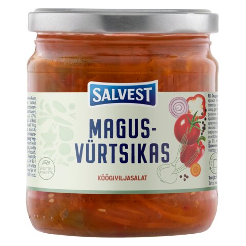 sibul, punane paprika, porgand, aedoakaun, suhkur, tomatipasta, KALAKASTE (ANŠOOVISE EKSTRAKT, sool, suhkur, happesuse regulaator (sidrunhape)), sool, rapsiõli, SEESAMISEEMNED, modifitseeritud tärklis, happesuse regulaator (äädikhape), kontsentreeritud sidrunimahl, vürtsid