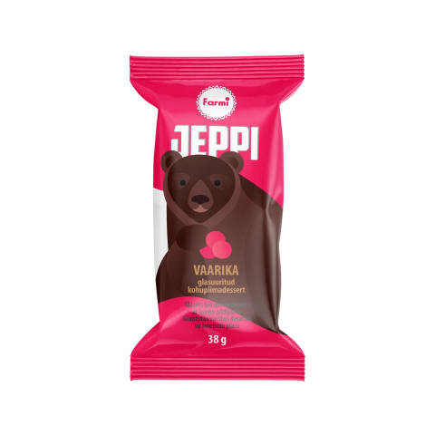 KOHUPIIM 47%, kakaoglasuur 18% (suhkur, kookosõli, sertifitseeritud palmiõli, vähendatud rasvasisaldusega kakaopulber 7%, kakaomass 7%, LÕSSIpulber, VADAKUpulber, emulgaator: SOJAletsitiin), sertifitseeritud palmiõli, sheaõli, suhkur, vaarikatäidis 6% (suhkur, vaarikad 32%, nisukiud, paksendaja: pektiin, toiduvärv: peedipunane, happesuse regulaatorid: sidrunhape, naatriumtsitraadid, kaltsiumtsitraadid, lõhna- ja maitseaine), VADAKUPULBER, želatiin, emulgaator E471, vanilliin, säilitusaine: kaaliumsorbaat.