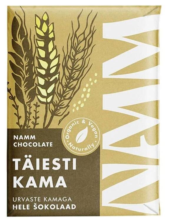 kakaovõi*, rafineerimata roosuhkur*, kamajahu (NISU*, RUKIS*, hernes*, ODER*, põlduba*)(15%), KAERAjoogipulber (KAER*, sool), kakaopulber*, kohv*, vanilje*. (*mahepõllumajandusest). Kakao sisaldus vähemalt 46%.Võib sisaldada jääke PÄHKLITEst (metsa-, maa- ja indiapähkel, MANDEL).* Toote koostisosade loetelu võib muutuda. Kontrollige enne toote tarbimist pakendil esitatud koostisosi.