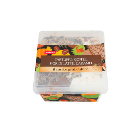 jäätis 89% (taastatud rasvatu PIIM, suhkur, glükoosisiirup, kookospähkliõli, SARAPUUPÄHKLID 1%, kohv 1%, kakaopulber 0,8%, toiduvärv E150a, emulgaatorid: E477, E471; stabilisaatorid: E410, E412; lõhna- ja maitseained), šokolaadisiirup 4,5% (glükoosisiirup, vesi, suhkur, šokolaadipulber 2% (kakaopulber, kakaopasta, suhkur), kakaopulber 2%, paksendaja E401, looduslik vanilli lõhna- ja maitseaine), karamellisiirup 4,5% (glükoosisiirup, vesi, suhkur, toiduvärv E150a, paksendaja E401), SARAPUUPÄHKLID 1%, kakaotükid 1% (suhkur, palmirasv, vähendatud rasvasisaldusega kakao, emulgaator E322 (SOJAST), glükoosisiirup, vanilliin)