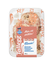 Broileririnnafilee 75%, vesi, Itaalia tüüpi kõva JUUST, kapparid, veiniäädikas, sool, rapsiõli, suhkur, SINEPISEEMNED, dekstroos, taimsed kiud, SINEPIPULBER, must pipar, happesuse regulaatorid: E260, E330; maitsetaimed (petersell, küüslauk, pune), paksendaja E415, modifitseeritud tärklis, lõhna- ja maitseained, antioksüdandid: E220, E300; toiduvärv E160, säilitusained: E202, E211. Toode võib sisaldada vähesel määral NISU, SOJA ja SELLERit.* Toote koostisosade loetelu võib muutuda. Kontrollige enne toote tarbimist pakendil esitatud koostisosi.