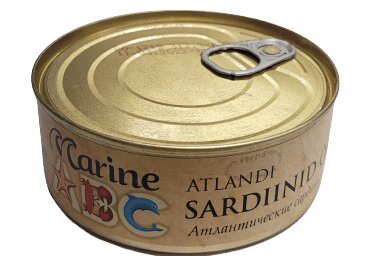 SARDIINID 70% (Sardina pilchardus, püütud merest FAO34), rapsiõli 10%, joogivesi, sool 1,3%. Kala kaal vähemalt 168g.