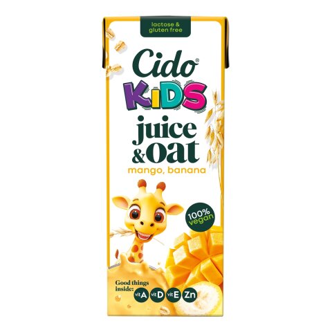vesi, mangopüree (22%) kontsentraadist, fermenteeritud kaer (6,4%), banaanipüree (2%), suhkur, hape (sidrunhape), lõhna- ja maitseained, A-vitamiin (120 mcg, 15%*), D-vitamiin (0,75 mcg, 15%*), E-vitamiin (2,4 mcg, 20%*), tsingiglükonaat (0,75 mcg, 7,5%*). Looduslikult laktoosivaba. Enne tarbimist loksutada. Pärast avamist hoida külmkapis ja tarbida 5 päeva jooksul. *keskmine täiskasvanu võrdluskogus
