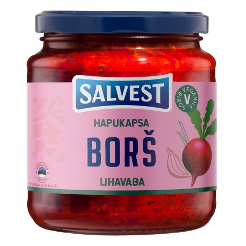 punapeet (32%), hapukapsas (18%), kartul (15%), porgand (8,5%), sibul (7%), tomatipasta, rapsiõli, toor-roosuhkur, meresool, maitsetaimed, vürtsid