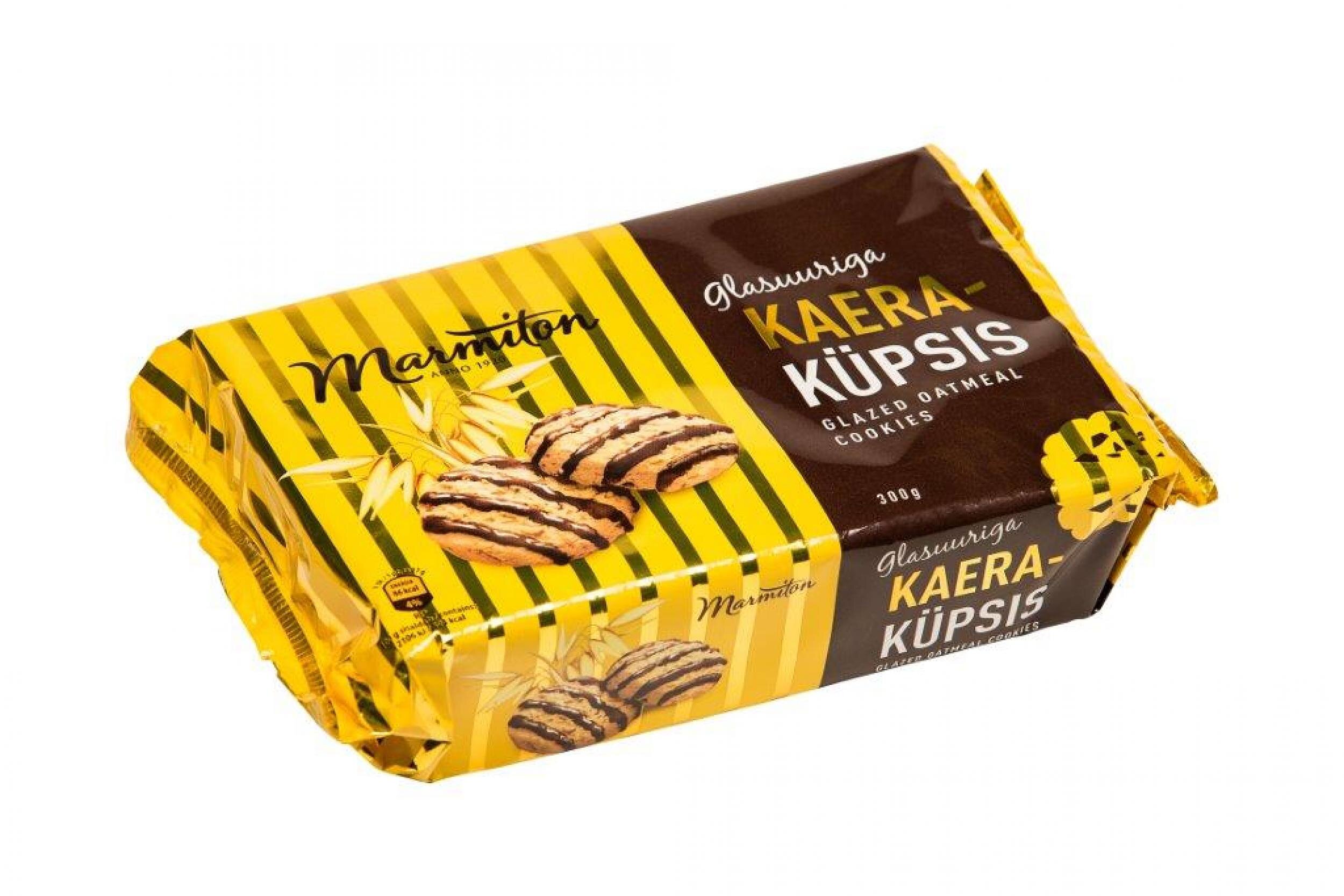 NISUJAHU, taimne rasv (palmi- ja võiseemnikuõli), KAERAHELBED 21%, suhkur, glasuur 8% (suhkur, palmirasv, kakaopulber, VADAKUPULBER, emulgaator SOJALETSITIIN, lõhna- ja maitseaine), kergitusained (naatriumvesinikkarbonaat, ammooniumvesinikkarbonaat), sool