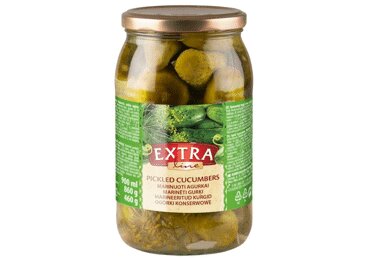 Kurgid 53% (päritoluriik – EL), vesi, suhkur, sool, hape - äädikhape, till, vürtside ekstrakt (küüslauk, estragon, SINEP, loorberileht, majoraan, must pipar, vürts).