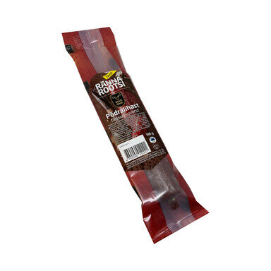 Põdraliha (100g toote valmistamiseks on kasutatud 45g põdraliha), veiseliha (100g toote valmistamiseks on kasutatud 30g veiseliha), sealiha (100g toote valmistamiseks on kasutatud 25g sealiha), seapekk, söögisool, sealihavalk, happesuse regulaator (glükoondeltalaktoon), dekstroos, antioksüdant (naatriumisoaskorbaat), lõhna- ja maitseained, maitsetaimed ja vürtsid, hüdrolüüsitud taimne valk, stabilisaator (difosfaat), happesuse regulaator (trifosfaat), hemoglobiin, säilitusaine (naatriumnitrit)