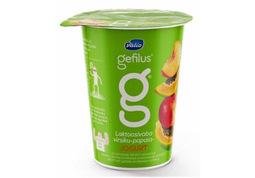PIIM, suhkur 5, 9%, virsikud 3, 2%, papaia 2, 3%, modifitseeritud tärklis, želatiin, lõhna- ja maitseained, happesuse regulaator (sidrunhape), juuretis, lactobacillus rhamnosus gg, d-vitamiin