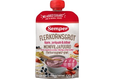 Puder 64% (vesi, kaerahelbed 5%, SPELTAJAHU 2%, maisijahu 2%, rapsiõli), õunapüree 18%, maasikapüree 12%, mustikas 5%, mineraalid (kaltsium, raud, tsink, jood), täis sidrunimahla, vitamiine (C, niatsiin, E, tiamiin, B6, foolhape).