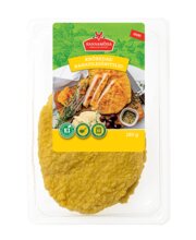 lihatäidis (61%) (broileri rinnafilee (72%), broilerinahk, vesi, sool, happesuse regulaator (kaltsiumlaktaat, naatriumatsetaat), lõhna- ja maitseained, dekstroos, vürtsiekstraktid, emulgaator (difosfaat), küüslauk), paneering (39%) (NISUJAHU, vesi, rapsiõli, maisijahu, sool, VADAKUPULBER, kergitusained (difosfaat, naatriumkarbonaat), happesuse regulaatorid (kaltsiumlaktaat, naatriumatsetaat), musta pipra ekstrakt, lõhna- ja maitseained, vürtsid, pärm, kurkumipulber, paprikaekstrakt, värvaine (beeta-karoteen). Toode võib sisaldada vähesel määral muna, soja, sellerit ja sinepit.