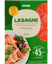 lasanjeplaadid: 63%: DURUMNISUJAHU. kastmepulber 37%: tomatipulber 13% (EL (Itaalia ja/või Hispaania)), NISUJAHU, suhkur, tärklis, sool, sibulapulber, lõhnaaine (sisaldab NISU ja SOJA), pärmiekstrakt, vürtsid, taimne valguekstrakt, küüslauk, maitseürdid, porgandipulber, punapeedipulber. Võib sisaldada piima, selleri, sinepi, kala ja lupiini jääke