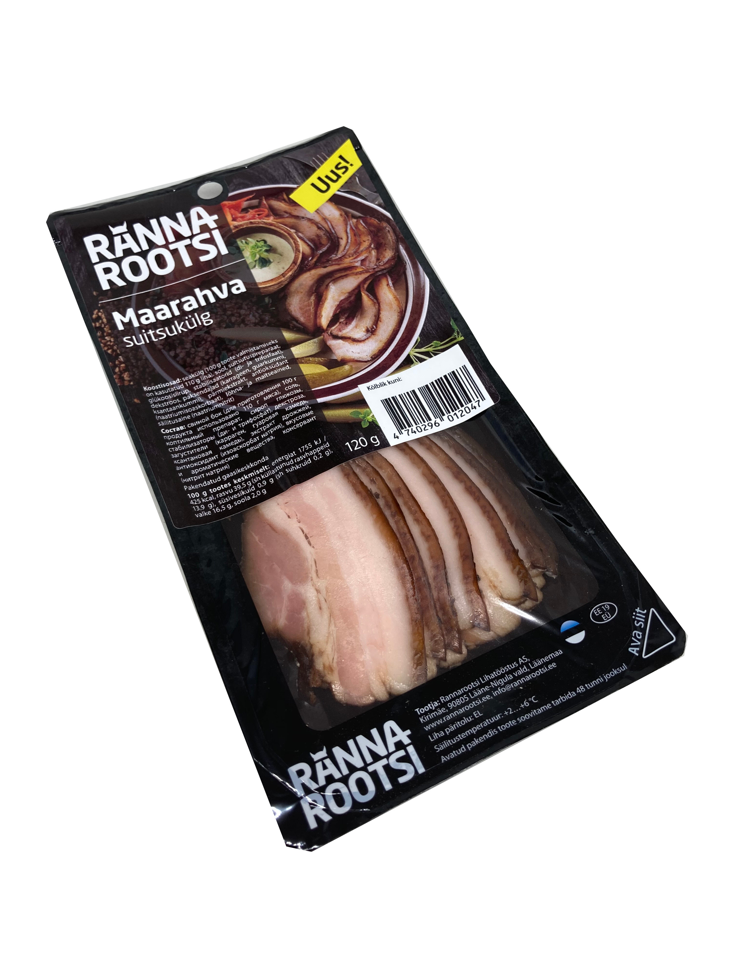 Seakülg (100 g toote valmistamiseks on kasutatud 110 g liha), sool, suitsutuspreparaat, glükoosisiirup, stabilisaatorid (di- ja trifosfaat), dekstroos, paksendajad (karrageen, guarkummi, ksantaankummi), pärmiekstrakt, antioksüdant (naatriumisoaskorbaat), lõhna- ja maitseained, säilitusaine (naatriumnitrit)