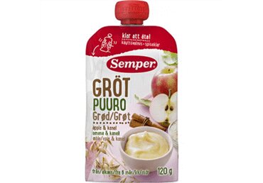 Puuviljad 65% (õun 45%, õunamahl (kontsentraadist) 20%), vesi, riisijahu, kaerajahu, kaerahelbed, rapsiõli, sidrunimahl (kontsentraadist), mineraalained (kaltsium, raud, tsink, jood), vitamiinid (c, niatsiin, e, tiamiin, b6, foolhape), kaneel 0, 05%.