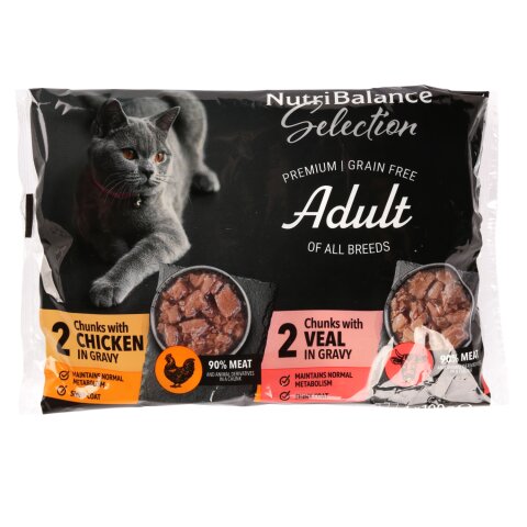 Täissööt kassidele Nutribalance Selection kanalihaga, vasikalihaga 4x100g