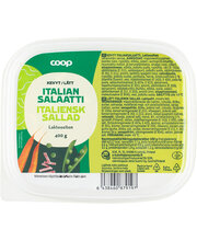 Majonees (vesi, rapsiõli, äädikas, suhkur, päevalilleõli, modifitseeritud maisi- ja kartulitärklis, SINEP (vesi, suhkur, SINEPISEEMNED, äädikas, jodeeritud sool, rapsiõli, värvaine (E 150a), säilitusained (E 211), valge) pipar), jodeeritud sool, säilitusained (E 202, E 211), lõhna- ja maitseained), keedetud spagetid (vesi, NISUJAHU, rapsiõli, joderat sool), porgand, hernes, sink 5% (sealiha (Soome), vesi, stabilisaatorid (Soome). E 1420, E 450), jodeeritud sool, paksendajad (E 407a, E 415), dekstroos, antioksüdant (E 301), lõhna- ja maitseained, säilitusained (E 250), suitsumaitse), konserveeritud kurgid (kurgid, äädikas, sool, suhkur , säilitusained (E 211, E 202), lõhna- ja maitseained (sh SINEPISEEMNED), magusained (E 954)), vesi, jodeeritud sool