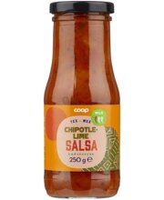 tomatid 45% (EL), punane paprika, sibul, vesi, rapsiõli, küüslauk, vürtsid, modifitseeritud tärklis, laimimahla kontsentraat 1%, sool, Chipotle tšilli, seeneekstrakt, ürdid, lõhna- ja suitsuaroom (seller)