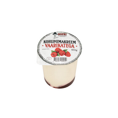 KOHUPIIM, JOGURT, suhkur, vaarikamoos 8% (suhkur, vaarikad, vesi, sidrunhape, säilitusaine kaaliumsorbaat, kaltsiumtsitraat), vanilliin. Vaarikate hapukus ja Nopri kohupiimakreem loovad ainulaadse ja maitseka koosluse. Marjade magusust aitab tasakaalustada vähendatud suhkrusisaldusega Nopri kohupiimakreem.