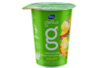 PIIM, suhkur 8%, mangod 2,6%, banaanid 2,2%, modifit-seeritud tärklis, chia seemned 0,3%, paksen-dajad (karrageen) natu-raalsed lõhna- ja maitseained, toiduvärv (beetakaroteen), hap-pesuse regulaator ( sidrunhape), želatiin, starterkultuur, Lac-tobacillus rhamnosus GG, D-vitamiin.