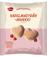 NISUJAHU, palmiõli, suhkur, vesi, taimne õli ja rasv (palm, raps), KANAMUNA, vaarikad (2,7%) (Poola, Serbia), pärm, õun (1,3%) (Türgi), sool, NISUGLUTEEN, kardemon, modifitseeritud kartulitärklis, emulgaatorid (E471, E481, E472e), viinamarjasuhkur, stabilisaator (E466), toiduvärv (E163), lõhna- ja maitseained, jahuparandi (E300). Võib sisaldada vähesel määral PIIMA, SOJA.
