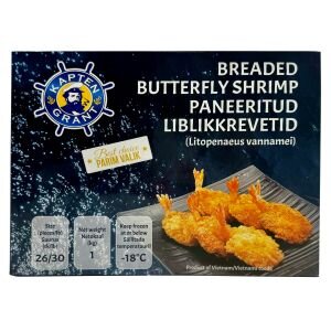 KREVETID 40% (litopenaeus vannamei), paneering 60% [NISU, vesi, maniokktärklis, suhkur, modifitseeritud tärklis (E1420, E1421), tärk lis (palmi), pärm, sool, paksendaja (E412), L-askorbiinhape (E300) , maitseaine (E621), taimerasv (perilla), emulgaator (E471), anti oksüdandid (naatriumtsitraat (E331), sidrunhape (E330)), sulfit]