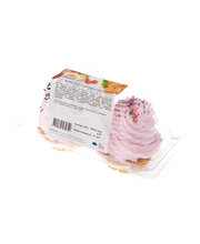 Suhkur, vesi, kohupiim 0,9%, vahukreem (täielikult hüdrogeenitud palmiõli, suhkur, piimavalk, stabilisaatorid: sorbitoolisiirup, E463, emulgaatorid: E472e, sojaletsitiin), munamass, nisujahu, margariin (palmi- ja rapsiõli, emulgaatorid: sojaletsitiin, rasvhapete mono- ja diglütseriidid), munavalgemass, happesuse regulaator: sidrunhape, toiduvärv: E120, lõhna- ja maitseaine (metsmaasika)