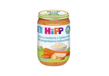 Aedviljad 38% (porgandid* 30%, kartulid* 8%), vesi,  keedetud riis* 15%, kalkuniliha* 8%, rapsiõli* 1, 9%. GLUTEENivaba. *Mahepõllumajanduses, naatrium 0, 02g, alfa-linoleenhape (oomega-3 rasvhape) 0, 14g.