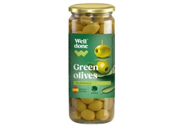 Vesi, rohelised kivideta Hojiblanca oliivid 46,66% (päritoluriigid – Hispaania, Portugal), sool, happesuse regulaatorid: piimhape, sidrunhape; antioksüdant askorbiinhape. Võib sisaldada oliivikive või -kivitükke.