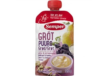 Puuviljad 67% (pirn 25%, pirnimahl (kontsentraadist) 25%, ploom 17%), vesi, riisijahu, kaerajahu, kaerahelbed, rapsiõli, sidrunimahl (kontsentraadist), mineraalained (kaltsium, raud, tsink, jood), vitamiinid (c, niatsiin, e, tiamiin, b6, foolhape)