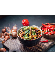 Kanaliha, riisinuudlid, paprika, kapsas, rohelised oad, sojakaste, küüslauk, tšilli, sool, pipar