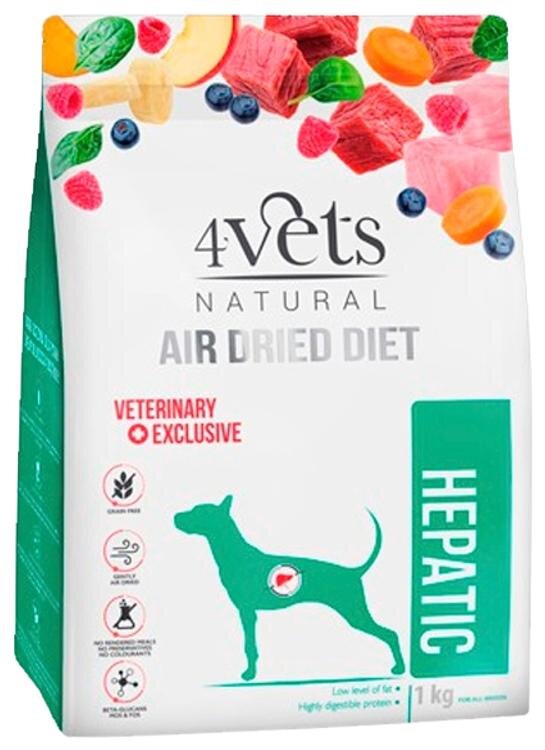 4Vets looduslik õhkkuivatatud veterinaartoit, kuivtoit maksaprobleemidega koertele 1 kg
