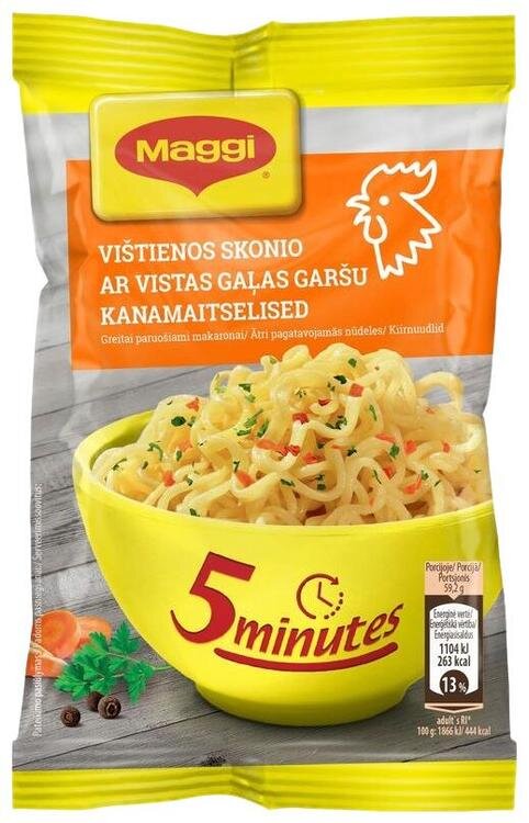 Nuudlid 92,9% (NISUjahu, päevalilleõli, NISUgluteen, sool, happesuse regulaator (kaaliumkarbonaat), stabilisaator (naatriumpolüfosfa at), vürtsisegu 7,1% (sool, lõhna- ja maitsetugevdajad (naatriumglutamaat, dinaatriumguanülaat, dinaatriuminosinaat), suhkur, kuivat atud köögiviljad (porgand 0,15%, sibul 0,03%, SELLER, porrulauk), lõhna- ja maitseained (sisaldavad MUNA, gluteeni, SOJA), vürtsid ( kurkum, murulauk, must pipar 0,03%, petersell 0,02%), SOJAvalguhüdrolüsaat, karamelliseeritud suhkur, päevalilleõli, toiduvärv (ribo flaviinid))