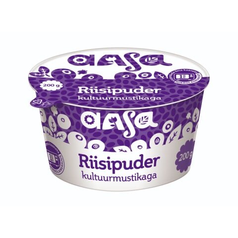 PIIM, RÕÕSK KOOR, 12% kultuurmustikalisandit (kultuurmustikad, suhkur, vesi, paksendajad: pektiin, ksantaankummi, modifitseeritud maisitärklis, tsitruskiud, lõhna- ja maitseained, mustika mahlakontsentraat, happesuse regulator: trinaatriumtsitraat); riis 9,6%, vesi, suhkur, LÕSSipulber, paksendajad: jaanileivapuujahu, karrageen; sool, lõhna- ja maitseaine: vanilliin. Segu sisaldab 5,5% kultuurmustikaid