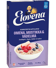 täisterakaerahelbed (79%), kuivatatud õun (8%) (õun, maisitärklis), suhkur, mustikavalmistis (3,4%) (suhkur, glükoosisiirup, mustikad, paksendaja (E401)), kuivatatud vaarikad (1,5%), sool