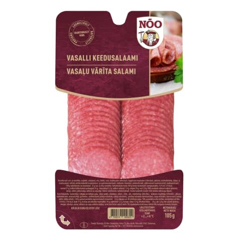 veise - ja sealiha, joogivesi, NISUjahu, keedusool max 2,5%, lõhna- ja maitseained, stabilisaator (di - ja trifosfaat), lõhna- ja maitsetugevdaja (Na - glutamaat), antioksüdant (Na - isoaskorbaat), säilitusaine (Na -nitrit)
